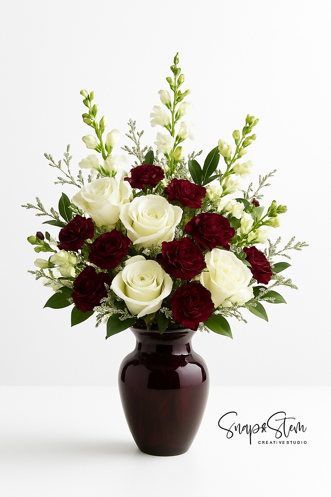 Stunning Crimson Ivory Grace arrangement featuring premium fresh flowers expertly designed with care and attention to detail.