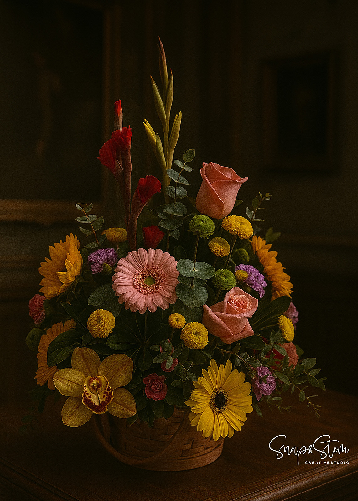 Beautiful Sunset Parlor floral arrangement